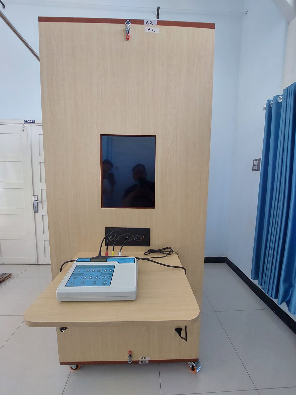 Dengan dimensi ruang yang kompak, yaitu 90cm x 90cm x 180cm, chamber audiometri ini memungkinkan penggunaannya di berbagai ruang atau fasilitas medis tanpa memakan banyak ruang. Meskipun ukurannya yang relatif kecil, ruang ini tetap dapat menciptakan lingkungan yang optimal untuk pengujian pendengaran dengan tingkat kebisingan yang sangat rendah. Hal ini memberikan keuntungan bagi pengguna dalam menghasilkan data pendengaran yang tepat dan dapat diinterpretasikan dengan baik.